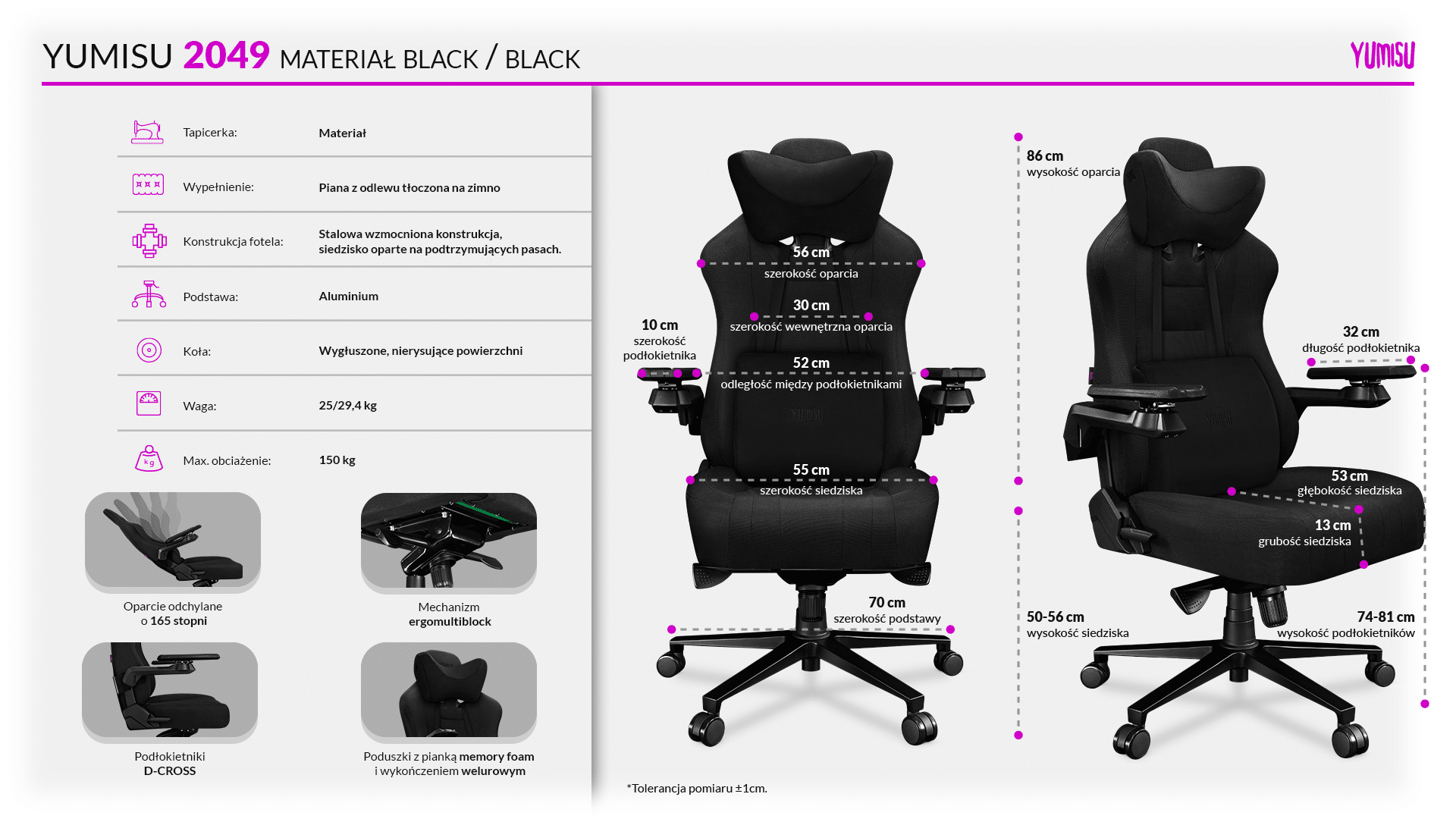 Fotel gamingowy YUMISU 2049 Tkanina BLACK
