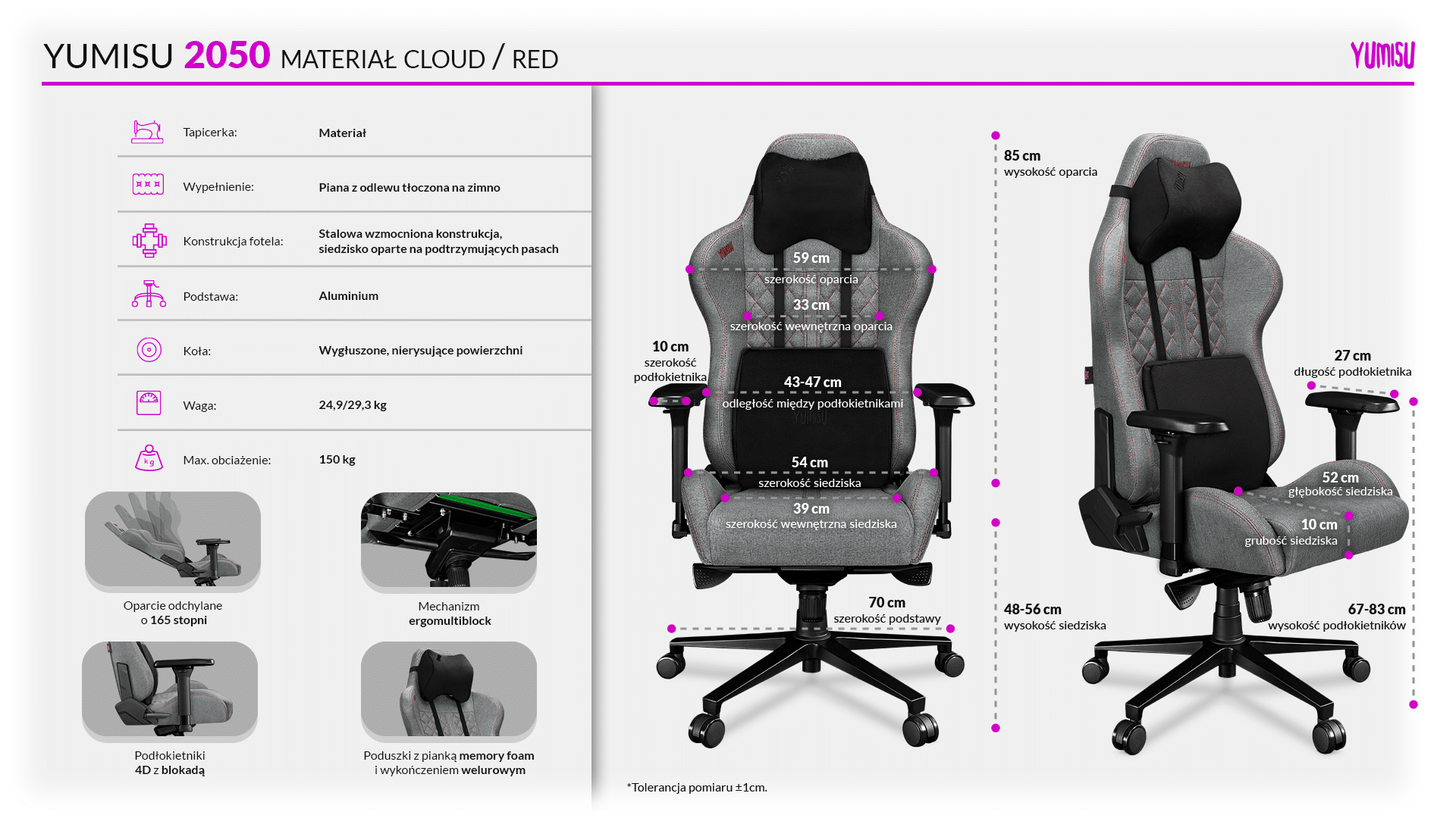 Fotel gamingowy YUMISU 2050 Tkanina CLOUD/RED